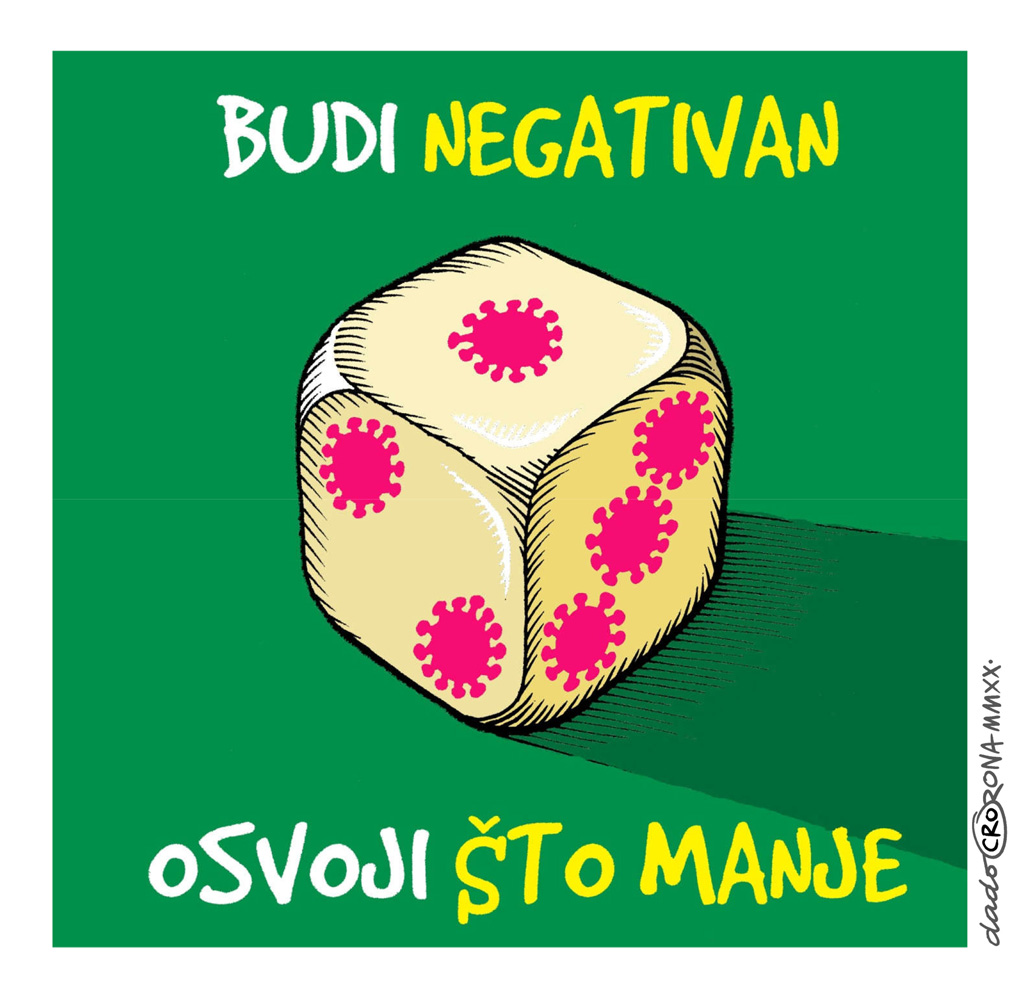I kako kaže poslovica: smijeh je lijek. Tako nas i ovih nemilih dana u doba strogog režima i samoizolacija Dado nasmijava svojim likovnim dosjetkama i humorom koji odagnaje ozbiljnost svakidašnjice. Izmislio je zabavnu igru kockom proizašlu iz trenutne situacije, koja se, za razliku od poznate igre „Čovječe ne ljuti se“, zove „Čovječe ostani doma“; a traži da igrač bude negativan, i da osvoji što manje. Naime na kocki su umjesto točkica s brojevima  od jedan do šest naslikani simbolili virusa Kovid 19. Duhovita je i ona stara Dadina karikatura „Molim jednu običnu gripu!“ koja je aktualizirana novim virusom, a sadrži sve prethodne prijetnje ljudima od kravljeg ludila, sarsa, pričje gripe, side i koječega što nam se ovih posljednjih godina naslagalo kao prijetnja. Čovjek se, naime, svjestan da se od nečeg mora razboljeti, odlučio za poznatu bolest.