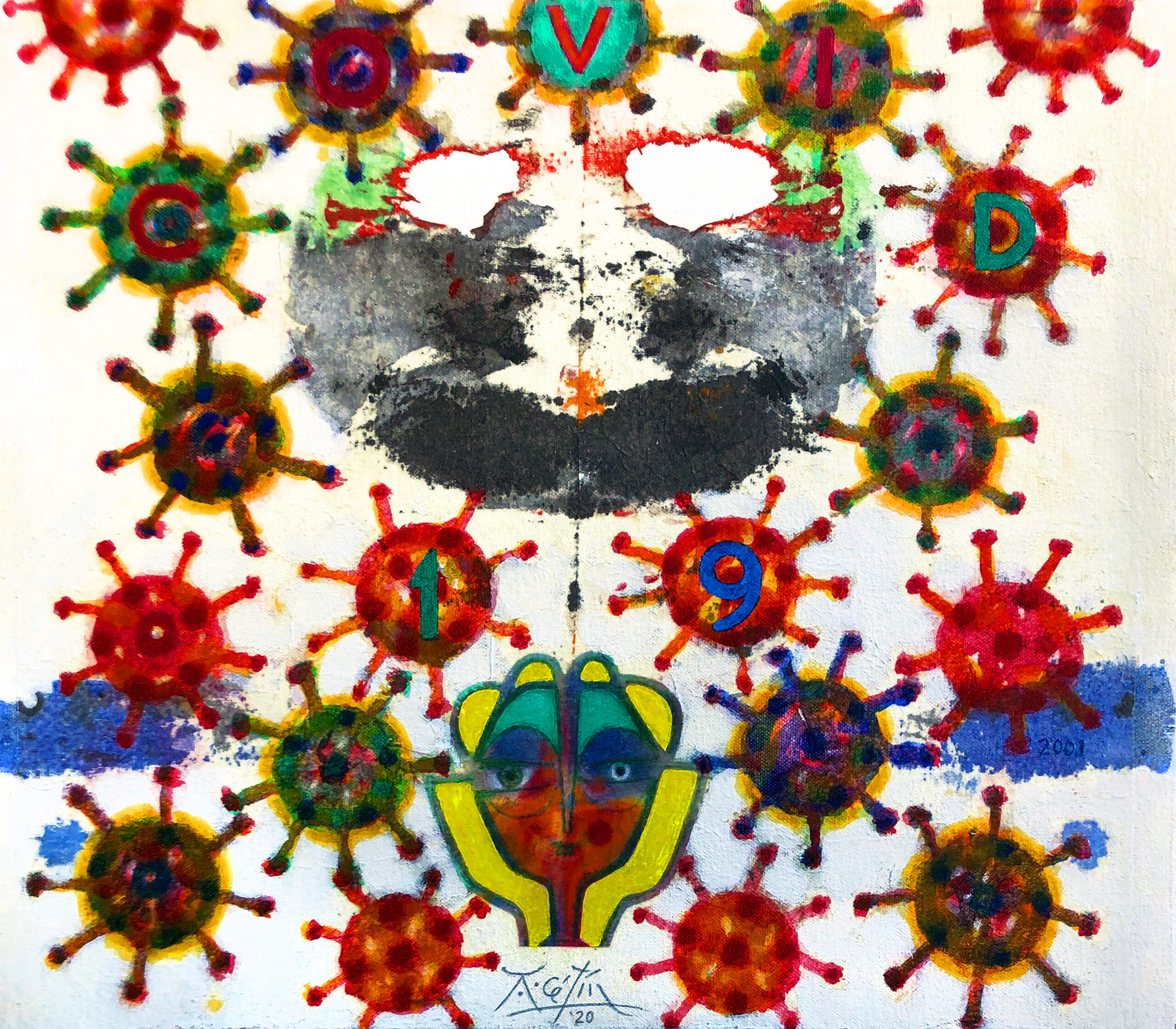 Međutim, autor nas upućuje na još jednu neobičnu poveznicu. To je ciklus „Uznemireni svemir“. A evo zašto. Još 2016. godine u razgovoru s Jasnom Lovrinčević (U vihoru vremena : Anton Cetín – Zadivljujuće stvaralaštvo, 20. veljače 2016.) o ciklusu „Uznemireni svemir“ koji je nastajao intenzivnim radom u tri prethodne godine, izjavio je da taj ciklus ostaje otvoren (work in progress) jer tema snažnog nemira još tinja u njemu. Neki od radova ovog ciklusa naslikani su još na prijelazu stoljeća u novi milenij 2001. godine, ali nisu bili upotrijebljeni za javno izlaganje te ih je autor pohranio u jednu kutiju i jednostavno na njih zaboravio. S pojavom Covida, svemir je postao opet uznemiren. I to ludo! Počela ga je proganjati ideja da i to treba obilježiti. Sjetio se kutije i u njoj pohranjenih radova. Kada je otvorio kutiju, odmah mu je bilo jasno da su radovi i te kako aktualni i da ih bez ikakvog razmišljanja može koristiti kao bazu-podlogu i na slikama uznemirenog svemira naslikati nove simbole – Covida. Kad je izvadio iz kutije radove i počeo ih brojati nije mogao vjerovati – bilo ih je točno 19! I tako je odlučio naslikati 19 slika Kovidom uznemirenog svemira. Na slikarski prikladan način, bez pretjeranog uvjeravanja u ovu ili onu sliku stvarnosti, Anton Cetín originalnim je slikarskim jezikom aktualizirao dramu koja je okružila svijet i iz koje ćemo, nadamo se, brzo izaći.