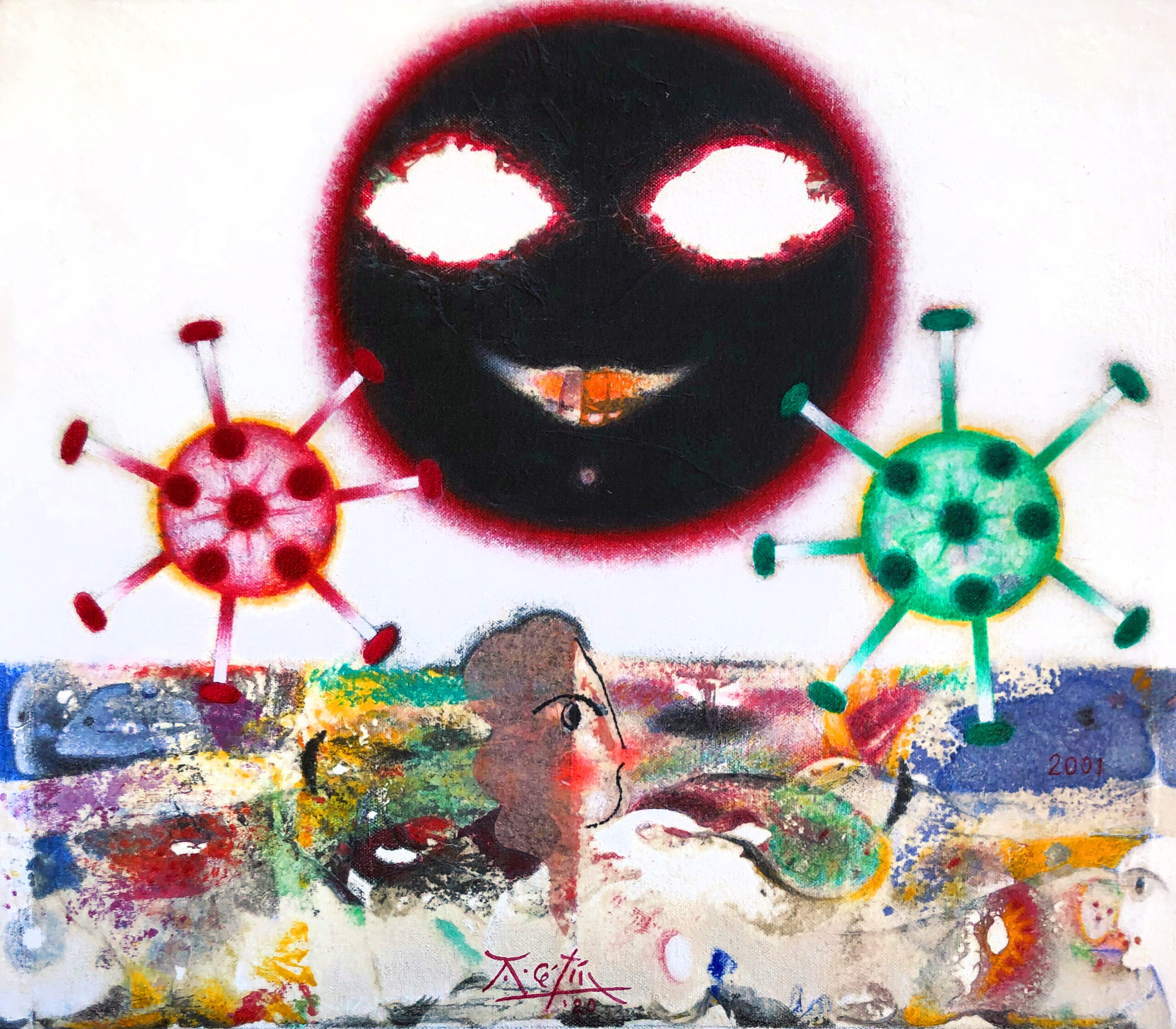 Hrvatsko-kanadski umjetnik Anton Cetín započeo je svoj novi ciklus inspiriran svjetskim događajem pandemije – kovidom 19, brzoširećim zaraznim virusom po kojem je nazvao ciklus. Kada je 1960-tih godina otišao u Pariz, tadašnji centar umjetničkih zbivanja, slikao je gotovo monokromne slike vrtložnih metaforičnih oblika. Nastale su kao odraz trajne prijetnje čovječanstvu hladnim ratom između dviju oprečnih ideologija: komunizma i kapitalizma koje su zagovarale dvije suprotstavljene imperijalističke velesile. U tom turbulentnom vremenu i dinamičnim slikama tjeskobe i neizvjesnosti Antonu Cetínu „pojavila se“ Eva, pramajka svih ljudi, roditeljica čovječanstva. Kroz njezin je lik umjetnik razgradio univerzalni jezik komunikacije. Poput znakovnog pisma Eva sadrži mogućnost predočavanja različitih smislova, misli, osjećaja, angažmana sažetih u slikarski originalnom rukopisu Antona Cetína.