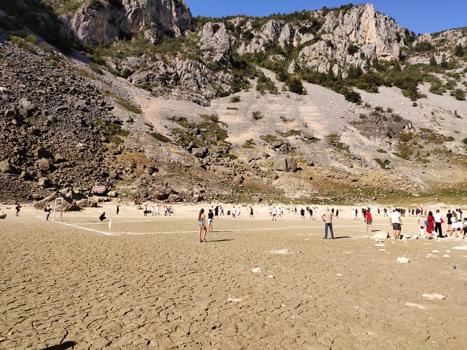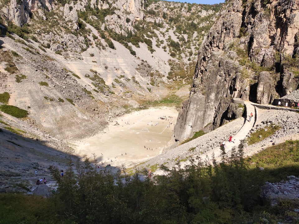 U nedjelju u popodnevnim satima odigrana je petnaesta jubilarna utakmica između vila i vukodlaka na dnu presušenog Modrog jezera pokraj Imotskog. Podsjećamo, dubina jezera varira između 0 i 150 metara, a tijekom rijetkih sušnih godina potpuno presuši te se tada odigrava ovaj imotski spektakl. Ova tradicija njeguje se od 1943. godine, a ove godine uživo ju je gledalo preko tisuću gledatelja koji su bez problema mogli održavati prikladan razmak. Utakmica je završila rezultatom 2:2.